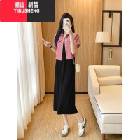 YIBUSHENG季粉色小披肩外套搭黑色吊带连衣裙两件套女精致显瘦长裙子套装