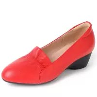 新款春秋季坡跟单鞋女软底真皮鞋妈妈女鞋四季圆头软皮妈妈鞋