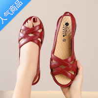 SUNTEK妈妈凉鞋坡跟高级感防水防滑软底舒适百搭鱼嘴鞋中年人女鞋子镂空
