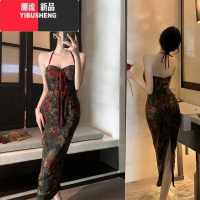 YIBUSHENG新中式御姐复古改良旗袍女季性感纯欲网纱高开叉包臀挂脖连衣裙