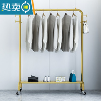 敬平轻奢落地挂衣服架家用卧室内衣帽架柜简易置物晾单杆式衣架移动轮 纳米金长70高135带轮+带板晾衣杆