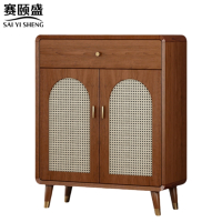 乐琪艺 实木鞋柜 胡桃色四门 个
