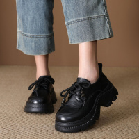 SUNTEKins复古松糕底小皮鞋女2023年新款软皮厚底单鞋英伦jk学院风鞋子