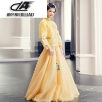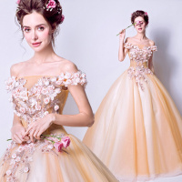 新款金色系花朵一字肩新娘婚纱礼服婚礼敬酒服蓬蓬裙1334