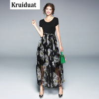 YIBUSHENG2024季新品妈妈装时尚拼接雪纺连衣裙中年女装气质显瘦裙子遮肉