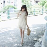 YIBUSHENG韩系混搭风叠穿刺绣雪纺背心裙两面穿大摆连衣裙系带透视长款罩裙