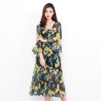 2024春夏装设计感木耳边碎花雪纺连衣裙新款中长款显瘦法式裙子女薄长袖碎花宫廷风小清新连衣裙别致减龄碎花雪纺连衣裙