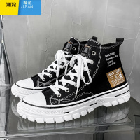聚范高帮帆布男鞋夏季透气潮流增高板鞋学生布鞋运动休闲百搭黑色潮鞋
