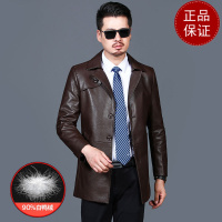 免费试穿 春秋男装绵羊皮外套 海宁真皮皮衣男夹克短款皮夹克外套加绒加厚冬装山羊皮中年翻领宽松大码立领棒球领商务休闲皮夹克