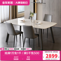 全友家居天然奢石餐桌客厅家用轻奢高级感长方形白色餐桌