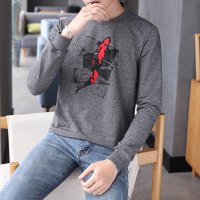 2017秋季圆领印花加刺绣长袖卫衣男装鱼纹撞色套头卫衣
