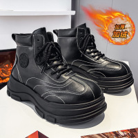 黑色皮靴加绒保暖户外工装靴子冬季加厚机车男鞋防滑加厚底马丁靴
