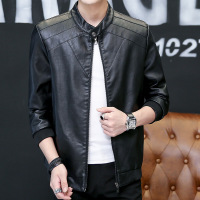 新款男式立领秋冬季PU皮衣时尚皮外套男士机车皮衣夹克黑色
