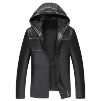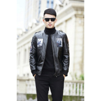 海宁真皮皮衣男短款立领头层牛皮羽绒棒球夹克服青年时尚耐润77黑色