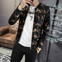 步来褶惠2017秋装店主风男装夹克金丝绒潮款时尚立领夹克衫黑色夏