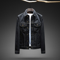 加绒牛仔衣秋冬男装加厚保暖韩版休闲翻领外套青年时尚修身夹克衫黑色