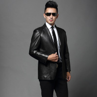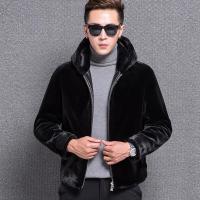 旗下秋冬新款大码男士羊剪绒大衣加厚时尚商务男装夹克羊绒外套黑色