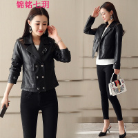 锦铭七玥皮衣女短款2018新款装女装韩版显瘦女士外套时尚潮黑色夹克