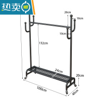 敬平轻奢晾衣架落地室内家用阳台卧室单杆宿舍挂凉晒被子器衣帽带轮 黑色长100高172配20轮子