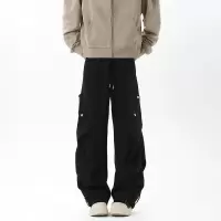 星空尼重磅420克工装裤男春秋加厚阔腿拼接卫裤直筒长裤