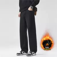 黑色直筒牛仔裤男秋冬季新款弹力加绒透气美式街头宽松百搭裤