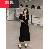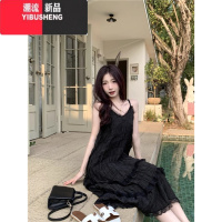 YIBUSHENG季新款法式温柔蛋糕裙韩系收腰黑色小碎花V领连衣裙长款裙子女