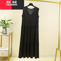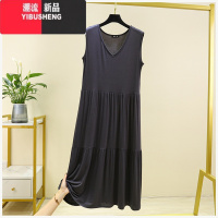 YIBUSHENG季薄莫代尔V领连衣裙大码显瘦拼接蛋糕裙无袖背心裙内搭连衣裙