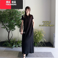 YIBUSHENG2024年季女士棉绸连衣裙宽松显瘦衬衣领气质大摆裙人造棉沙滩裙