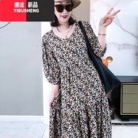 YIBUSHENG棉绸连衣裙新款季碎花印中长裙大码孕妇裙女人造棉宽松外穿海边