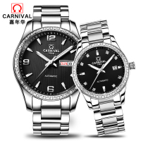 瑞士嘉年华Carnival情侣表全自动机械表 男休闲时尚手表多功能夜光防水金属精钢带情侣腕表男表女表一对表8692情侣款