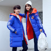 顺崇2017冬季新款刺绣龙学生条纹运动羽绒服女情侣装男中长款棉服