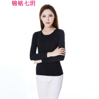锦铭七玥春季薄款莫代尔黑色打底衫修身百搭居上衣女式圆领长袖T恤秋衣