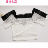 锦铭七玥新款一字领上衣露肩内搭 蕾丝半截打底衫莫代尔短袖T恤女