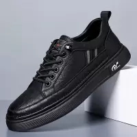 头层牛皮男鞋秋季新款男士休闲皮鞋男时尚透气鞋英伦系带款单皮鞋