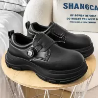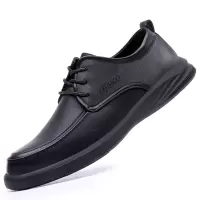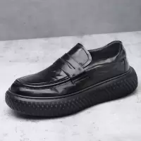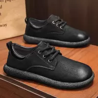 秋季上新款黑纯色圆头低帮正装工作休闲皮鞋厚底亮面英伦风男皮鞋
