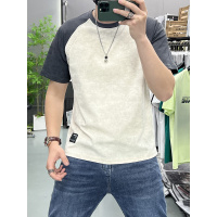 夏季休闲男士晕染拼接短袖T恤衫时尚字母钢印圆领套头上衣T恤
