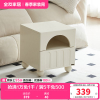全友家居奶油风床头柜实木脚抽屉式卧室置物收纳储物小柜子