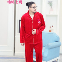 浪莎情侣睡衣男女士冬季法兰绒加长睡袍睡裤套装可外穿卡通风2024新款 情侣笑脸款 男L