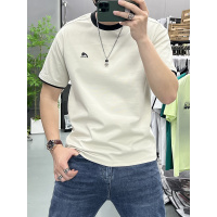 夏季青年款刺绣字母撞色圆领短袖T恤潮流简约气质情侣款宽松上衣