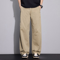 男士卡其垂感工装裤春秋全棉水洗阔腿2026新款宽松直筒长裤子