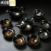 三维工匠整套茶具套装家用简约黑陶瓷金木叶盏功夫茶杯子泡茶盖碗茶壶茶盘 10头黑釉两金叶握把壶茶具套装