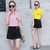 薇侣2017新品夏装套装女时尚新款韩版短袖衬衫阔腿裤短裤气质名媛两件套潮