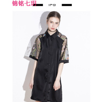 锦铭七玥设计连衣裙夏女士 中长款短袖衬衫裙 绣花时尚翻领衬