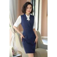 职业套装女短袖衬衫美容院马甲连衣裙韩版时尚OL正装女白领工作服前台套裙格子包臀裙收银员工装