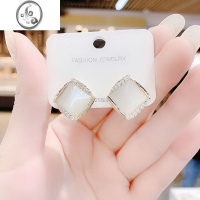 JiMi高级感猫眼石耳环2023年新款潮韩国简约几何菱形耳钉气质网红耳饰