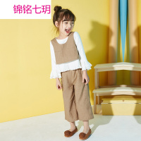 锦铭七玥女童春款装套装2018新款春季韩版儿童阔腿裤长袖喇叭三件套童装潮