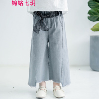 锦铭七玥2018春款新品儿童腰绳阔腿裤女童不规则磨中童韩版牛仔裤