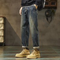 潮牌锥形牛仔裤 男款重工拼接做旧 春季复古水洗休闲长裤
