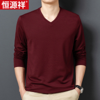 恒源祥春季中年父亲圆领桑蚕丝长袖T恤男士内搭上衣服男装打底衫