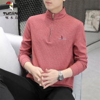 啄木鸟长袖t恤男士2025年春季商务休闲上衣半拉链立领打底衫男款